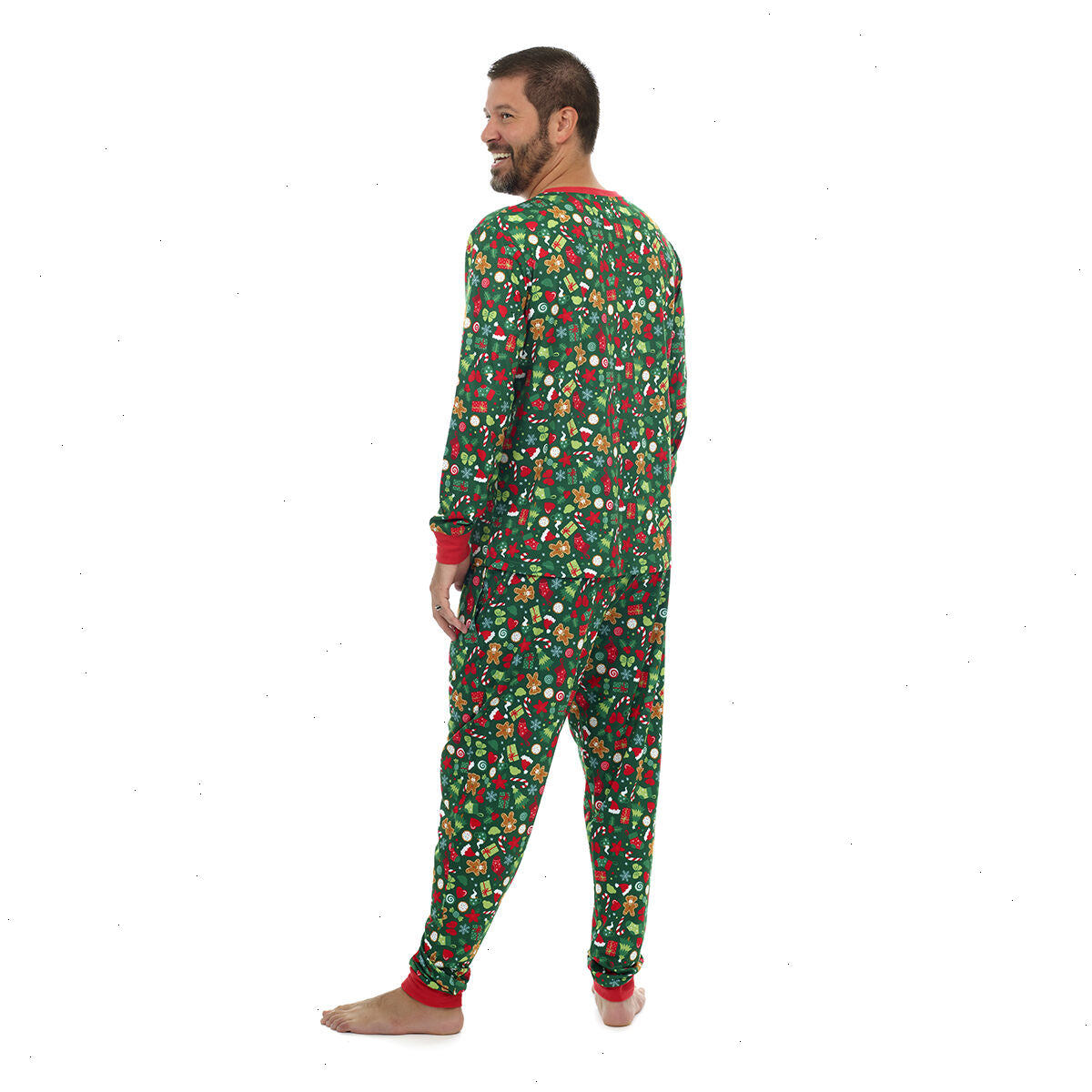 This Christmas, we cuddle! You'll feel as jolly as Santa himself when lounging and sleeping in these knit PJ pants for adults. Featuring an all-over print pattern of festive holiday icons, these green and red drawstring pajama pants are a must-have for Christmas morning and all winter long. Pair it with a Build-A-Bear Pajama Shop™ PJ top to complete the look. Build-A-Bear Pajama Shop™ styles are available in adult, youth and toddler sizes, so the whole family can have fun matching in their PJs!